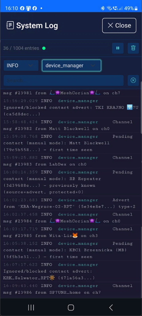 Update all documentation to reflect features added since last doc update: - README: new features list, gallery screenshots, development status - User Guide: global search, console commands, device dashboard, settings, system log, backup, updated DM and contact management sections - Architecture: complete API reference, WebSocket namespaces, updated project structure and database tables - Troubleshooting: remove v1 bridge references, add UI-based backup, system log references - Gallery: add 4 new screenshots (search, filtering, settings, system log), update 12 existing screenshots Co-Authored-By: Claude Opus 4.6 <noreply@anthropic.com>