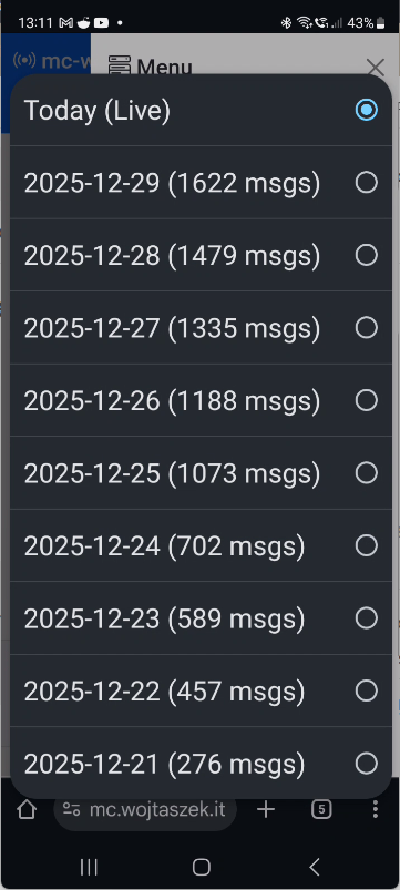 - Message archives - Automatic daily archiving with browse-by-date selector