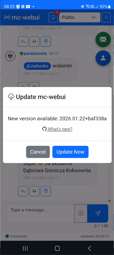 mc-webui is a Flask-based web application providing browser-based access to MeshCore mesh network. It communicates directly with your LoRa device (via USB, BLE, or TCP) using the meshcore Python library, eliminating the need for SSH/terminal access. Tested on Heltec V3 and Heltec V4.